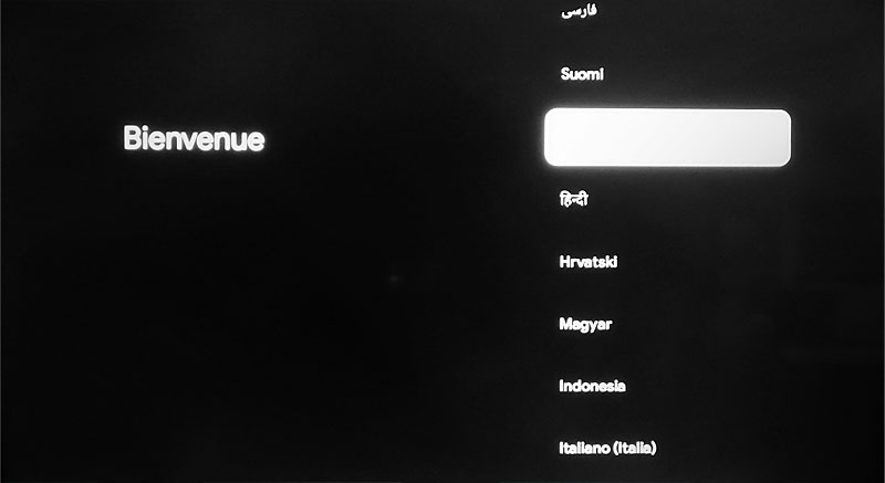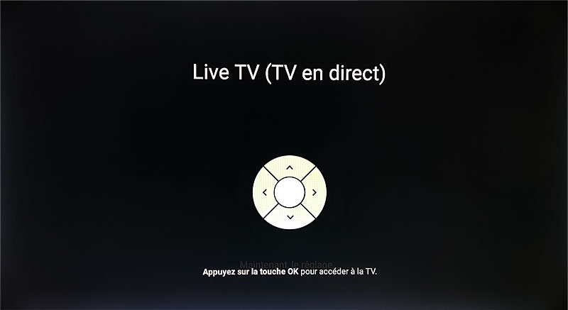 Ce premier démarrage est un peu lent. Au début, le système d'exploitation est an anglais. On nous demande (effectivement) de vérifier l'appairage de la télécommande en appuyant sur retour et home.