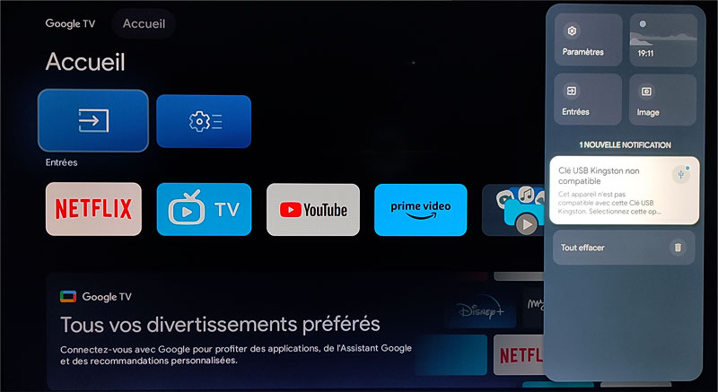 Je branche la clé USB sur laquelle se trouvent mes vidéos (30 Gi) et qui est très bien gérée par une smart TV Philips et par mon Raspberry Pi 3+. Un message d'erreur m'annonce qu'elle n'est pas supportée. Pourtant elle est bien formatée en FAT32.