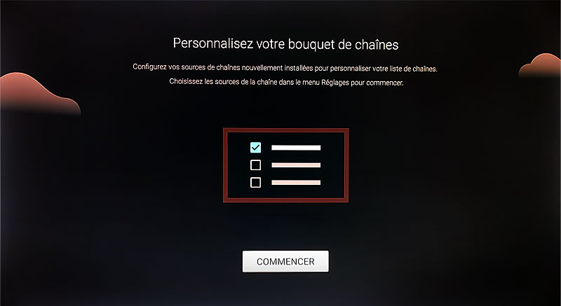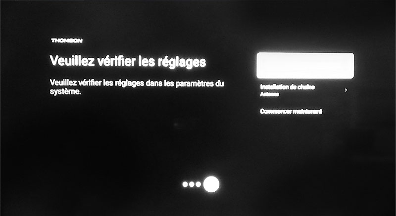 On nous redemande notre pays. Puis de vérifier les réglages (lesquels ? Pourquoi ?). Je choisis « Commencer maintenant » en espérant qu'on va enfin pouvoir regarder la télé.