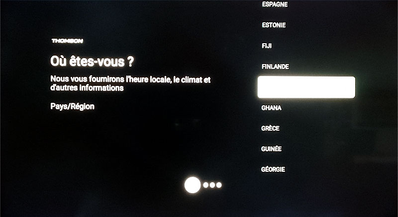 Ensuite, pour une raison qui m'échappe, j'ai à nouveau droit à l'écran d'installation de chaînes (ignorer) puis on me demande à nouveau dans quel pays je suis, et enfin de vérifier mes réglages. Lassant à la fin…