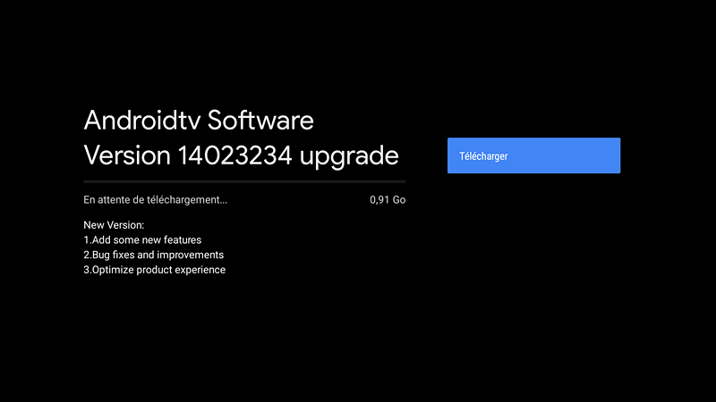 Après un long téléchargement (près de 10 min), la mise à jour en elle-même est plutôt rapide. La télévision fait un reboot complet (j'ai droit au logo Thomson). De petites infobulles m'indiquent ce qui a changé. Notamment, « Pour vous » est devenu « Accueil », l'onglet Bibliothèque a disparu et la Recherche a été déplacée.