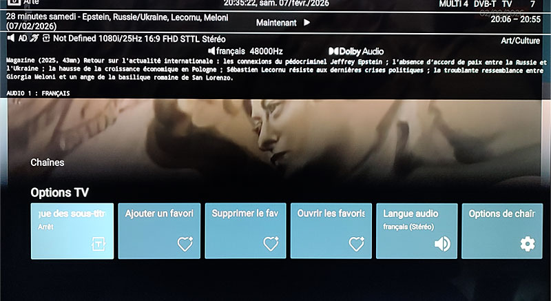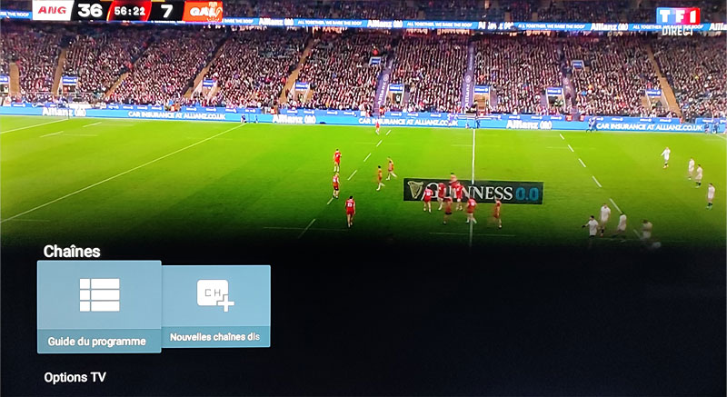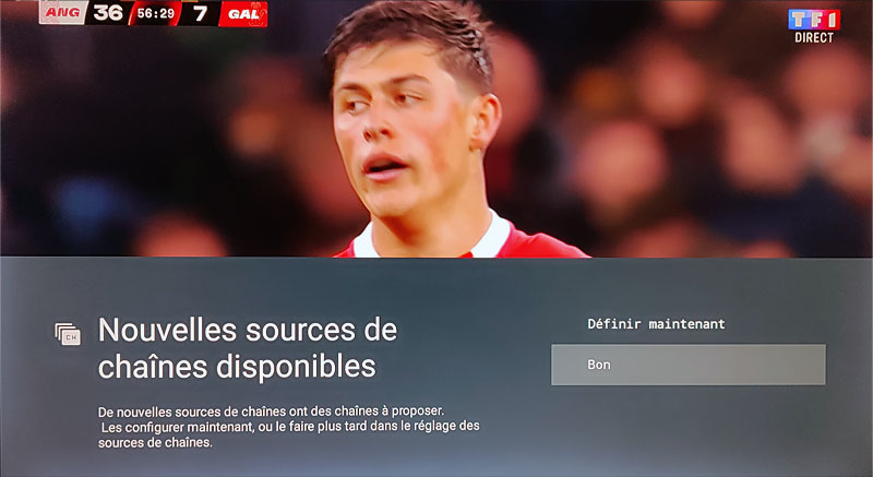 Ensuite, on tombe par défaut sur TF1. Pffff, du foot… Et déjà , un popup me saute à la figure pour me proposer de nouvelles sources. On verra plus tard…